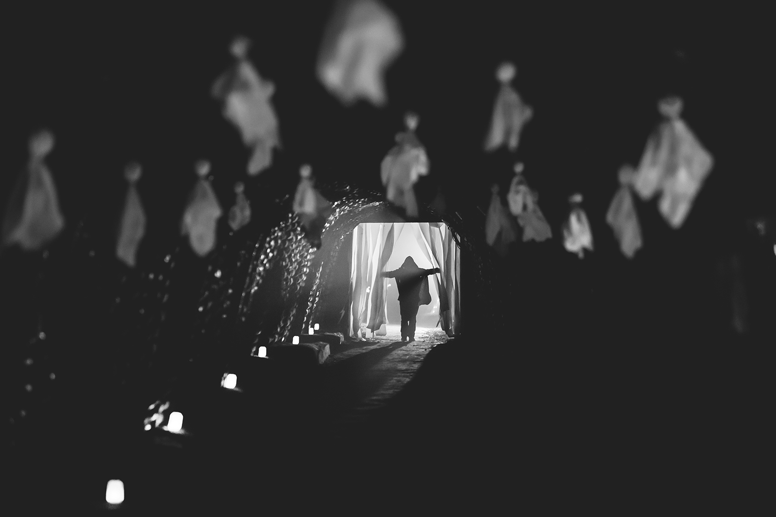 Bei Kerzenschein trifft man auf kleine und große, liebe und böse Geister, die sich schon das ganze Jahr darauf freuen, den Besuchern das Fürchten beizubringen. Diejenigen, die mutig weit im Inneren des Stollens ankommen, erwartet eine Belohnung in Form einer Schatzsuche.
