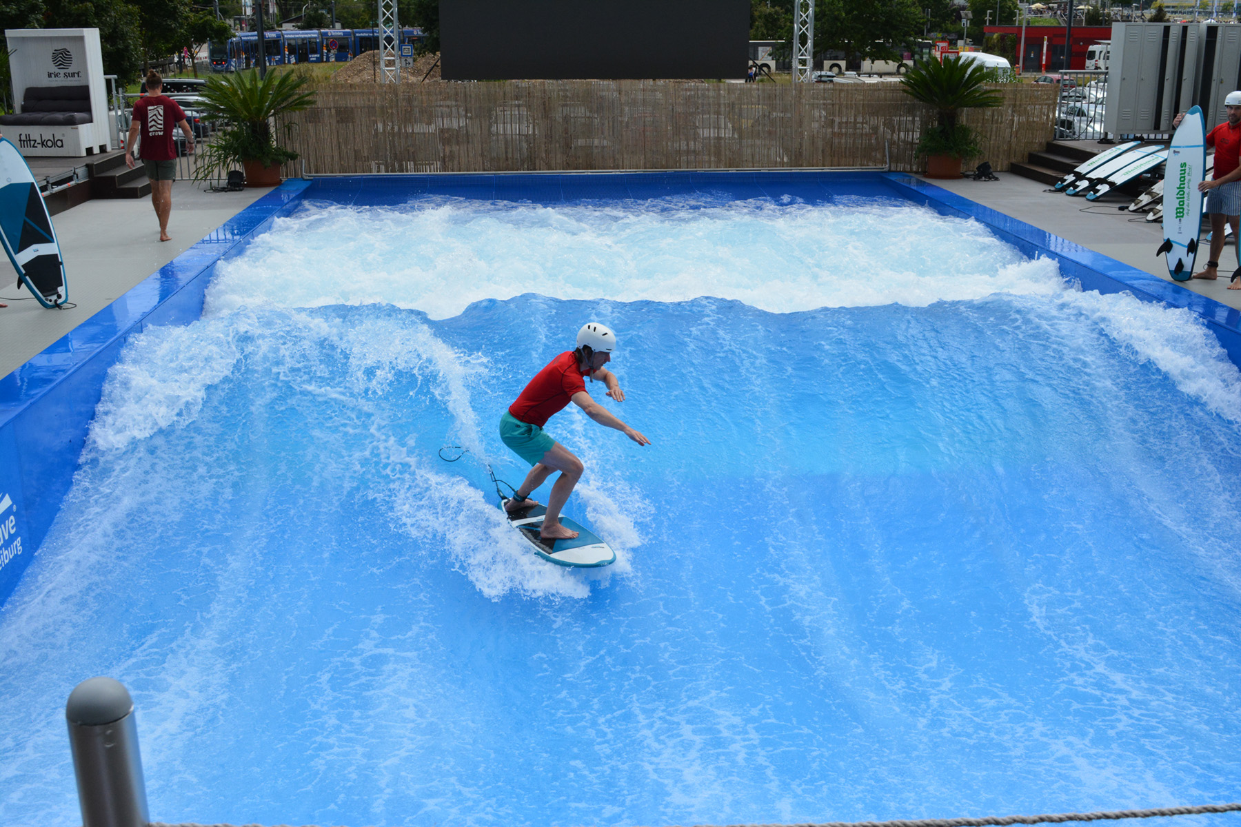 Seit April 2025 gibt es in Freiburg ein ganz neues Sport-, Kultur- und Eventerlebnis mit Namen irie surf. „Irie“ ist ein Begriff aus der jamaikanischen Kreolsprache Patois und bedeutet so viel wie „unbeschwertes Leben, Glück und Freude“. Und genau dieses positive Gefühl möchten der Initiator und Inhaber Mario Gerlach und sein Team ihren Gästen vermitteln, sei es beim Surfen in der Tausend Kubikmeter Wasser fassenden Citywave-Anlage, sei es bei Yoga-Kursen, wöchentlichen Kulturevents, Familien- oder Firmenfeiern oder einfach nur bei einer Tasse Kaffee oder einem kühlen Drink auf der gemütlichen Plattform.