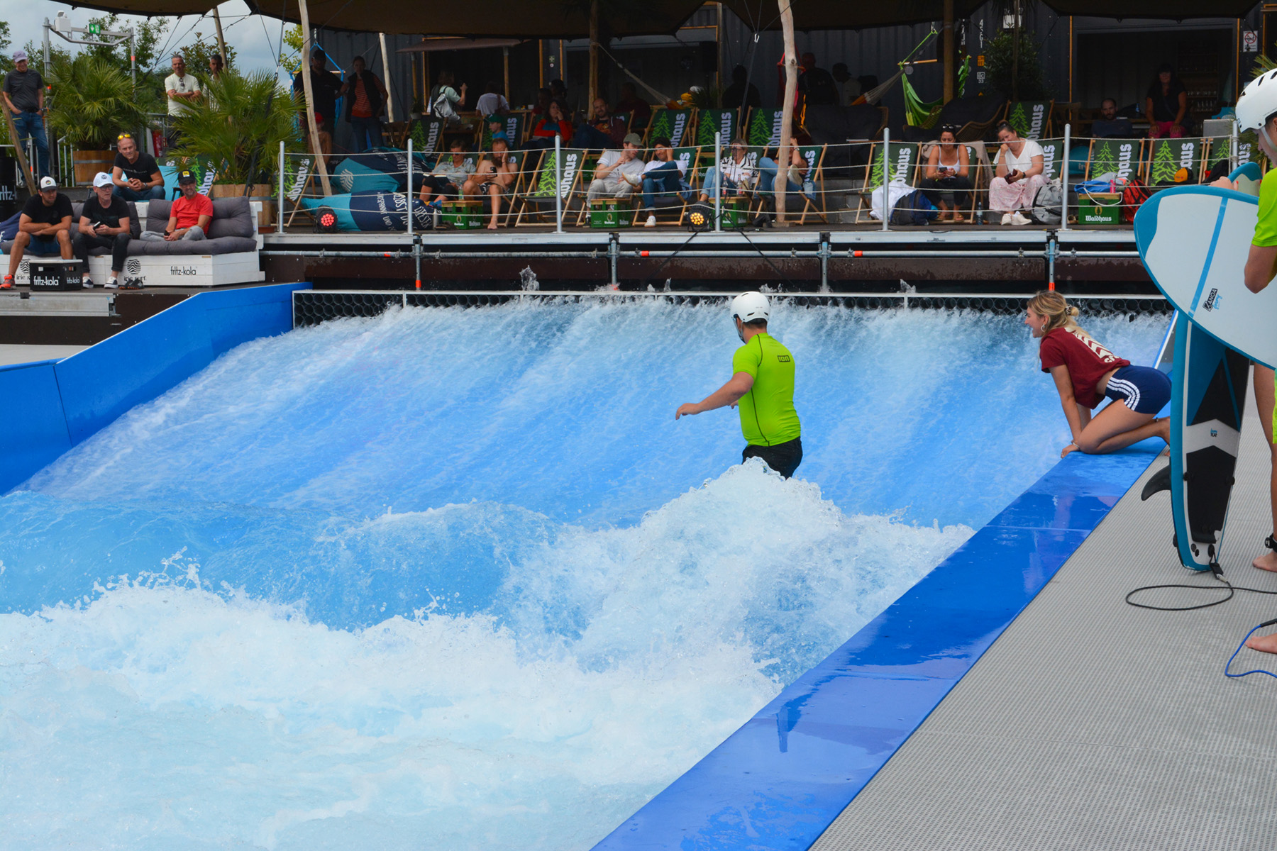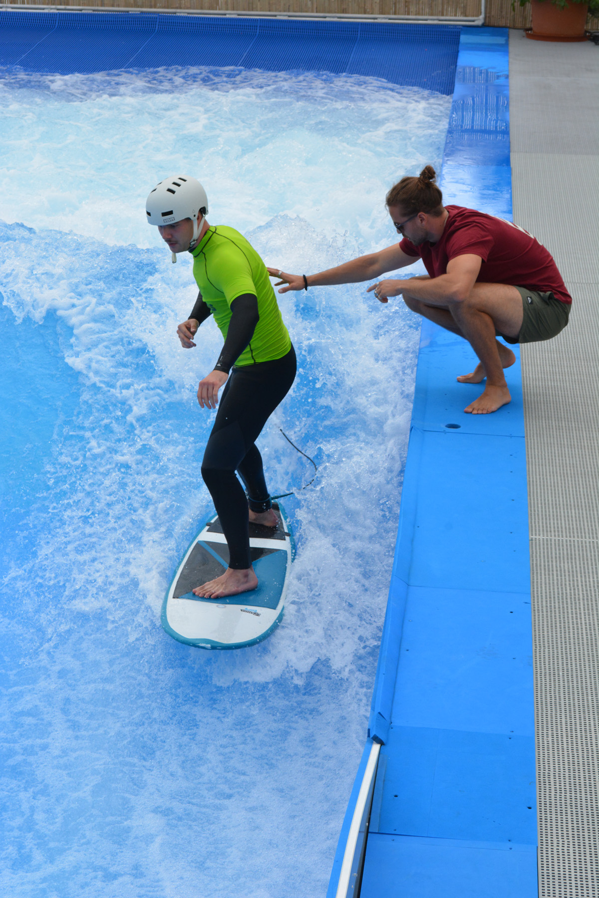 Das Surf-Angebot reicht von Kids- über Anfänger-, Intermediate – bis hin zu Advanced Kursen. Kinder (Mindestgewicht 30 kg, Alter max. 16 Jahre) erhalten in einer sicheren Umgebung mit erfahrenen Coaches und viel Geduld eine spielerische Einführung ins Surfen. Anfänger lernen in einer kleinen Gruppe von bis zu sechs Personen alles, was sie zum Einstieg auf die Welle brauchen. Zu Beginn können Kinder und Anfänger sich mithilfe einer Haltestange an das Gefühl auf dem Board gewöhnen. Bei Intermediates mit ersten Surf-Erfahrungen liegt der Focus auf Balance, Kontrolle und ersten Manövern ohne Haltestange und erfahrene Surfer können sich in den Advanced Kursen auf einer kraftvollen Welle üben und von den Coaches wertvolle Tipps zu Technik, Turns, Tricks und Flows bekommen.